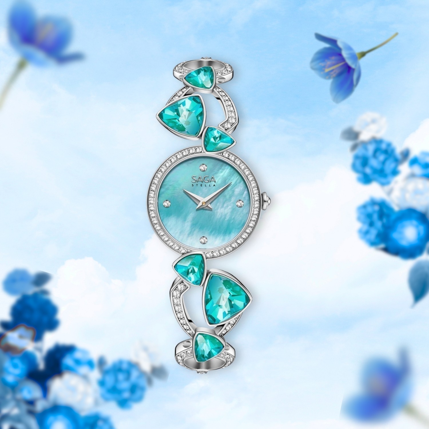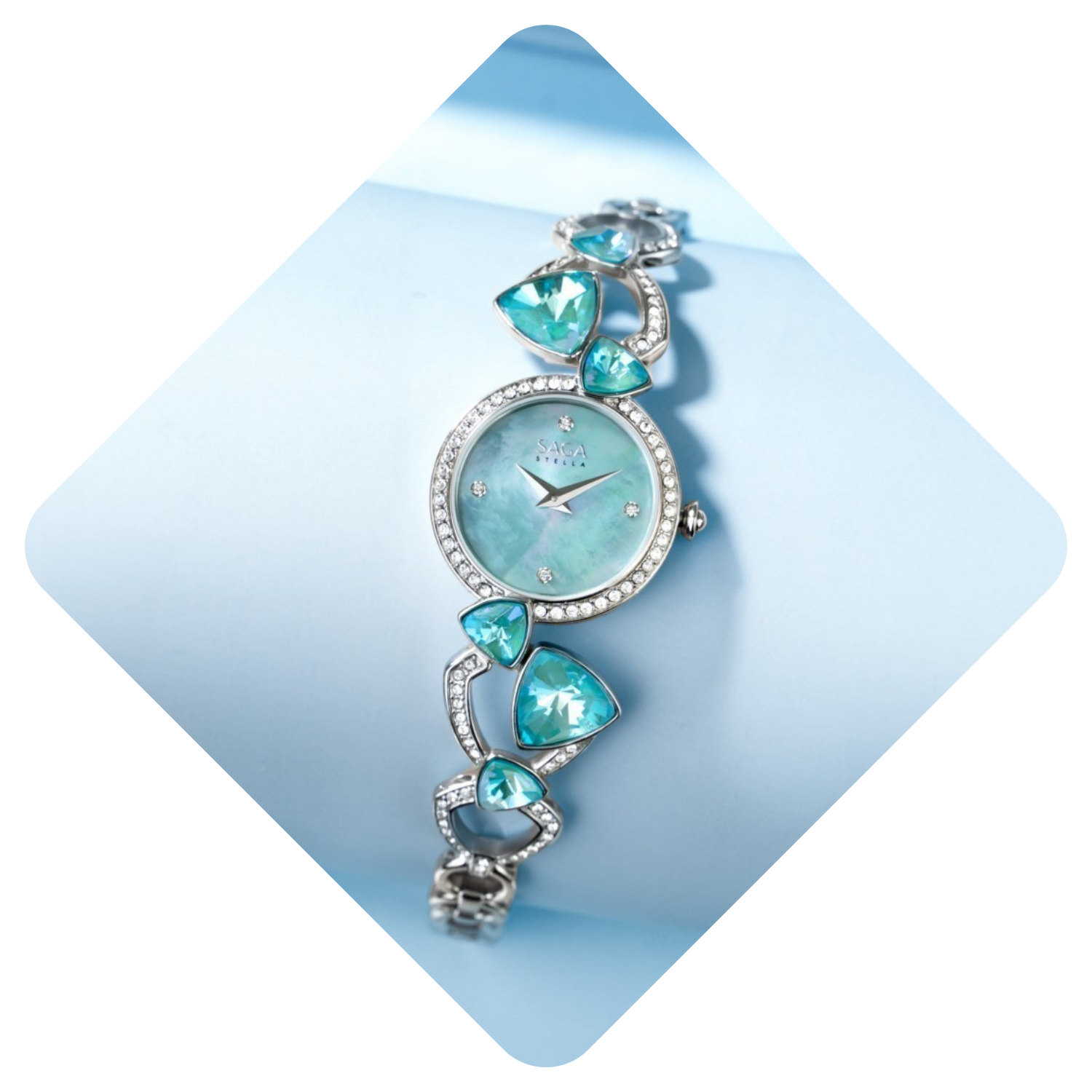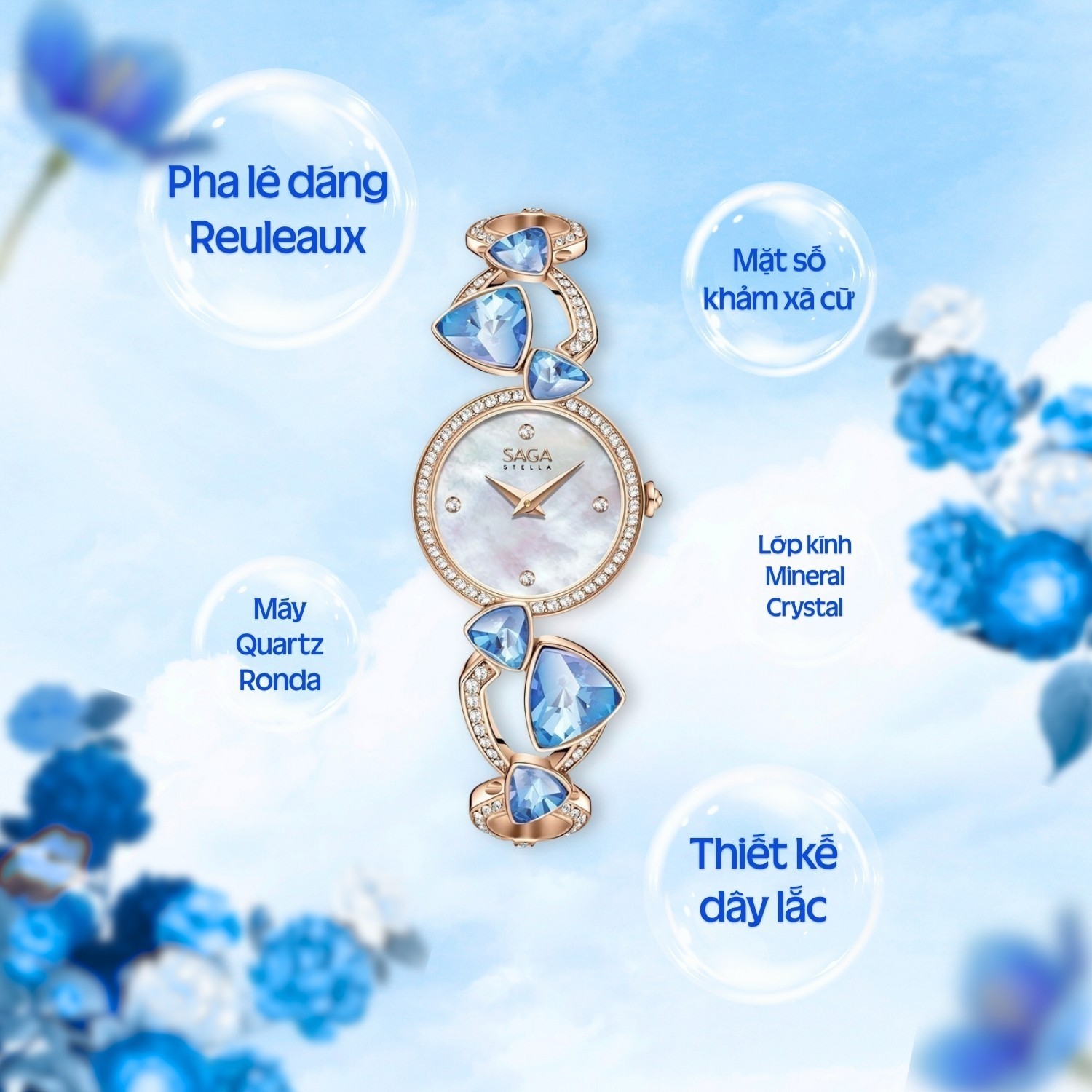 Không giống những kiểu dây kim loại thông thường, dây lắc của đồng hồ đính đá Saga Fly Of A Kite được tạo nên từ các mắt xích mang hình dáng Reuleaux – chi tiết đặc trưng đã làm nên linh hồn của cả bộ sưu tập.