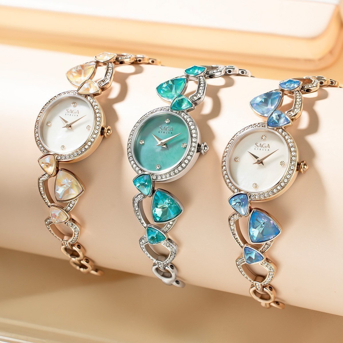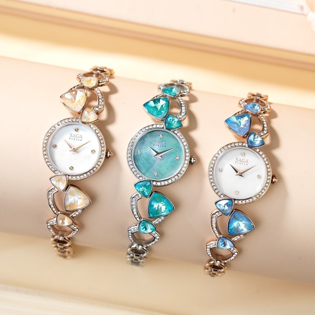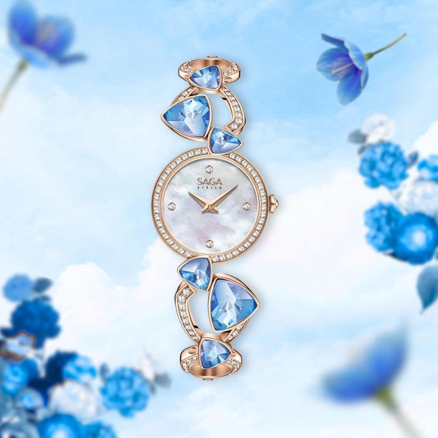 Không giống những kiểu dây kim loại thông thường, dây lắc của đồng hồ đính đá Saga Fly Of A Kite được tạo nên từ các mắt xích mang hình dáng Reuleaux – chi tiết đặc trưng đã làm nên linh hồn của cả bộ sưu tập.