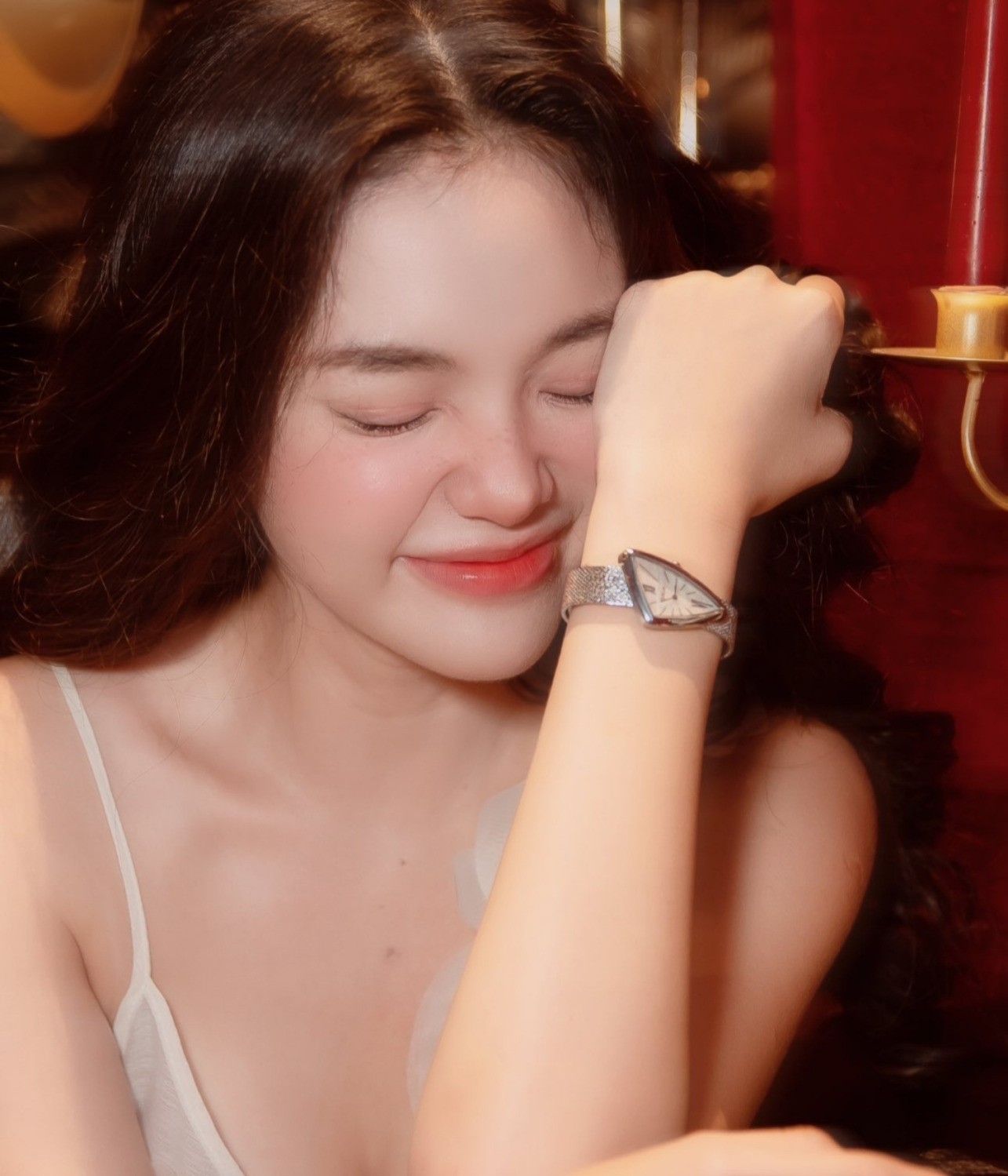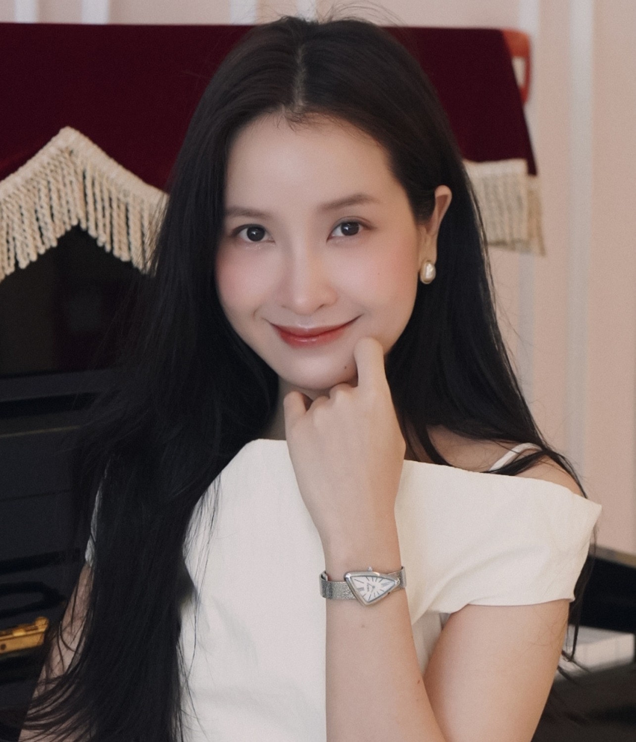 “Sinh nhật năm nay, chồng mình tặng mình chiếc Saga Triangle – món quà mình đã thầm “fall-in-love” từ lâu. Anh nói rằng cô giáo thì phải đeo đồng hồ thanh lịch, nhã nhặn mới hợp.” – Nàng chia sẻ trên trang cá nhân kèm bộ ảnh lookbook thời thượng.