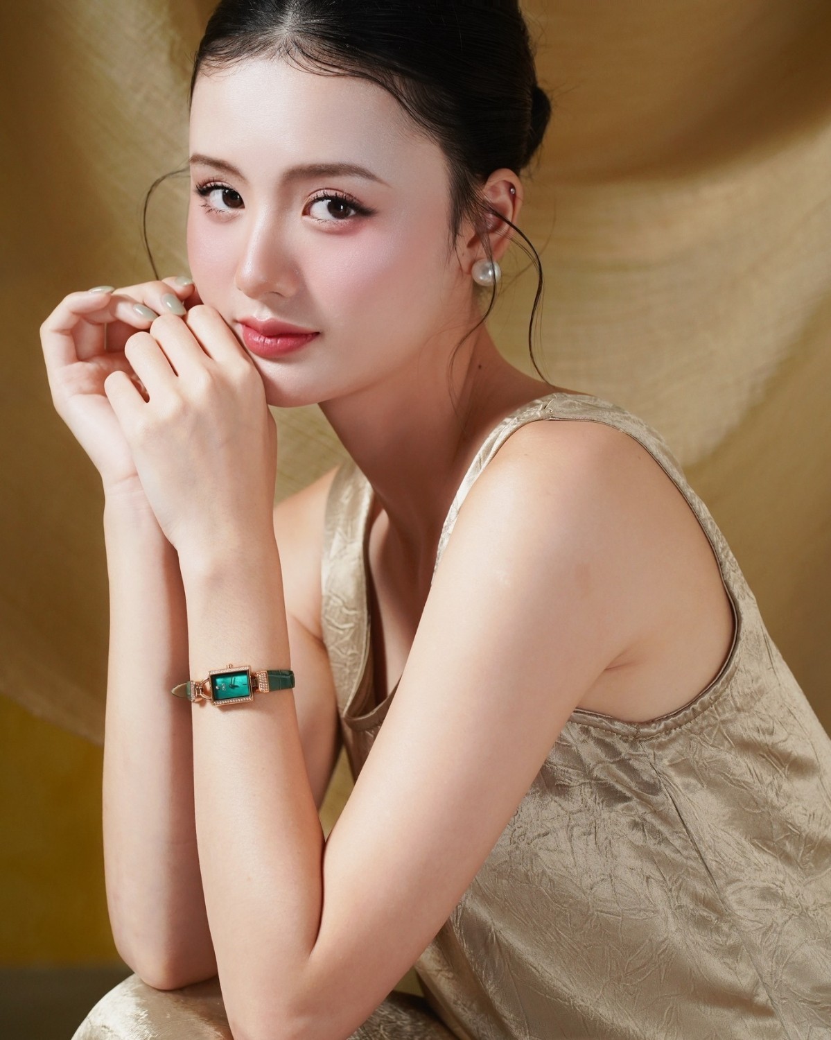 Mỗi chuyển động nhẹ trên cổ tay đều phản chiếu ánh sáng lung linh, tựa như nàng đang dịch chuyển giữa vô vàn vì tinh tú.