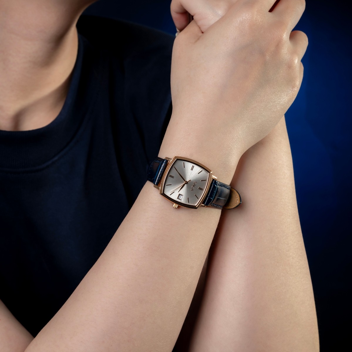 Không chỉ riêng Patek Philippe mới sở hữu các mẫu mang dáng cushion dành cho nữ; nhiều thương hiệu khác cũng mang đến vô số lựa chọn đầy cuốn hút. Trong số đó, Saga góp mặt với đồng hồ thời trang Saga 71979-RGSVBL-2.