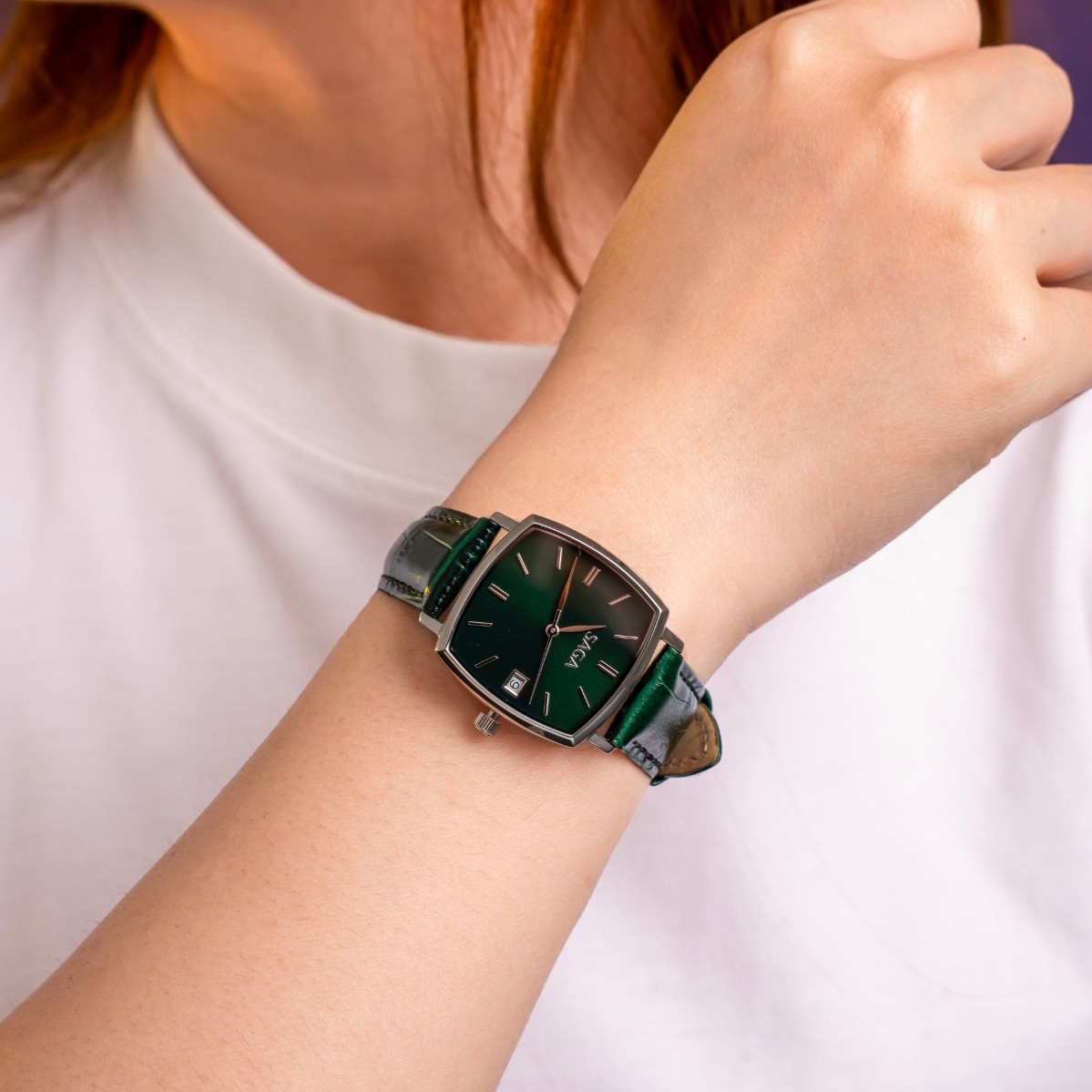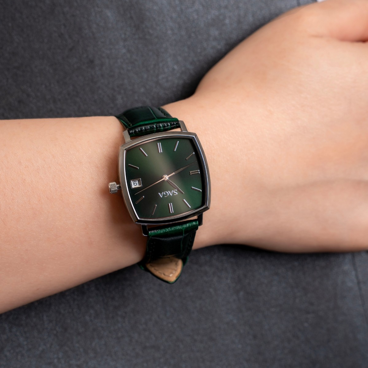 Chính vì vậy, khi vừa bước vào Saga Vietnam, ánh mắt Hân gần như lập tức bị hút về phía chiếc đồng hồ mặt xanh lá Saga 71979-SVGRGR-2.